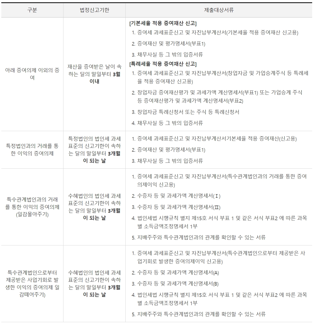 증여세의 신고납부기한