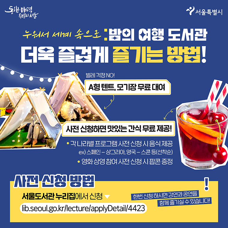 누워서 세계 속으로: 밤의 여행도서관으로 오셔서 열대야를 날려보세요!